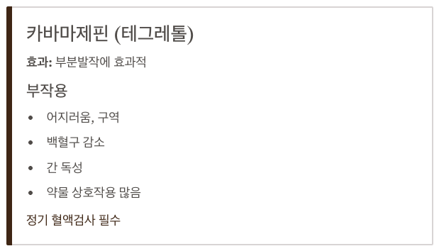 • 장점: 부분발작에 효과적