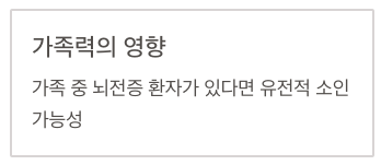 - 가족 중 뇌전증 환자가 있다면 유전적 소인이 있을 수 있습니다.