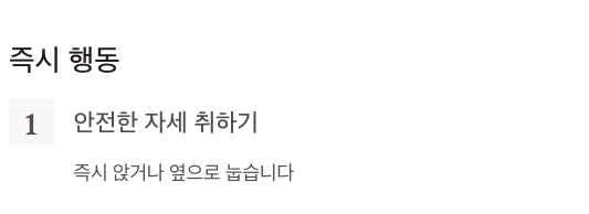 • 느낌이 온다면 즉시 앉거나 옆으로 눕고, 계단, 화장실, 주방 등 위험한 곳을 피하세요