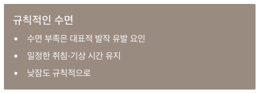 • 수면 부족은 대표적인 발작 유발 요인입니다