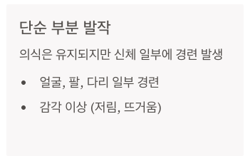 - 의식은 유지되지만 신체 일부에 경련이 발생합니다.