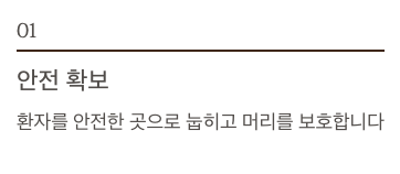 - 환자를 안전한 곳으로 눕히고 머리를 보호합니다.