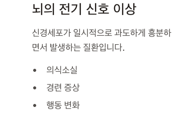 - 발작이 끝난 후 혼수 상태 또는 깊은 수면에 빠지기도 합니다.