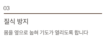 - 몸을 옆으로 눕혀 기도가 열리도록 하여 질식 방지합니다.