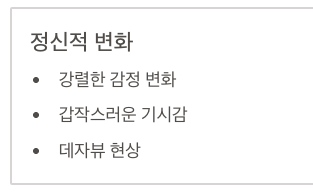 - 갑작스러운 감각 이상(저림, 뜨거움, 소름 등)도 흔한 증상입니다.
