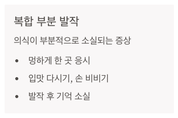 - 발작 후에는 그 순간의 기억을 잃는 경우가 많습니다.