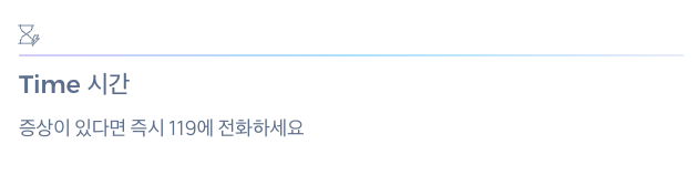 | T (Time) | 증상이 있다면 즉시 119에 전화하세요 |