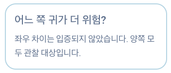 A. 현재까지의 연구에서는 귀의 좌우에 따른 차이는 입증되지 않았습니다. 양쪽 모두 관찰 대상이 됩니다.