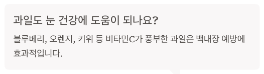 • 고당도 식품: 혈당이 급격히 오르면 수정체 단백질이 손상될 수 있음