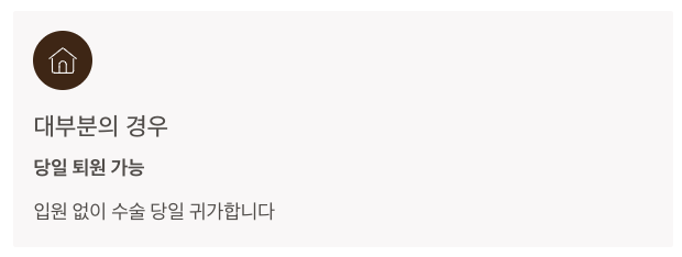 | 회복 및 귀가 준비 | 회복실 안정 후 퇴원 | 30~60분 |