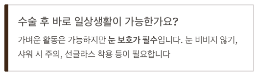 Q. 수술 후 바로 일상생활이 가능한가요?