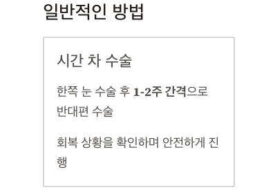A. 일부 병원에서는 가능하지만 일반적으로는 한 쪽 눈 수술 후 1~2주 간격으로 반대편 눈을 수술합니다.