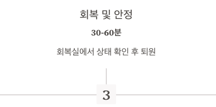회복 및 귀가 준비 회복실 안정 후 퇴원 30~60분