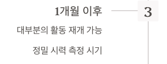 - 1개월 이후: 대부분의 활동 가능, 정밀 시력 측정 시기