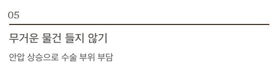 무거운 물건을 들면 안압이 상승하여 수술 부위에 부담을 줄 수 있습니다. 최소 2주간은 무리한 운동이나 노동을 피하세요.