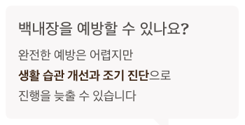 ※ 증상이 있다면 안과 전문의의 정밀 검진을 받는 것이 중요합니다.