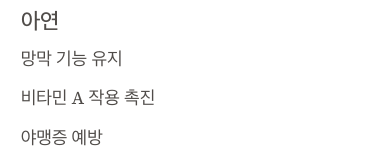 - 야맹증 예방, 안구 피로 완화 효과도 있음