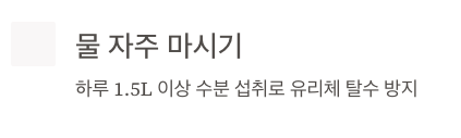 - 물 자주 마시기 (하루 1.5L 이상)