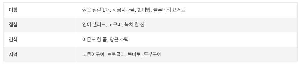| 시간대 | 식사 예시 |