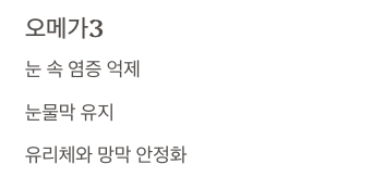 - 눈 속 염증을 억제하고, 눈물막 유지에 필수