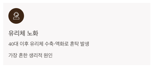 가장 흔한 원인으로, 나이가 들면서 유리체가 점차 수축하고 액화되어 내부에 혼탁이 생기는 자연적인 현상입니다.