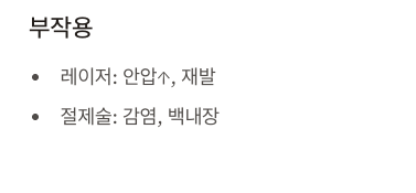 - 절제술: 감염, 망막열공, 백내장 등 합병증 가능성 존재