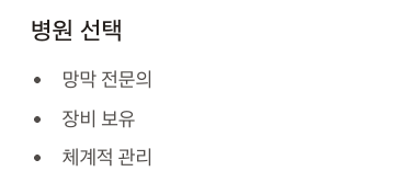 - 시술 및 수술 후 추적관리가 체계적인 기관 추천