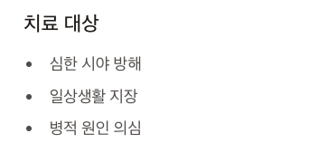 - 시야 방해가 심하여 일상생활이 어려운 경우