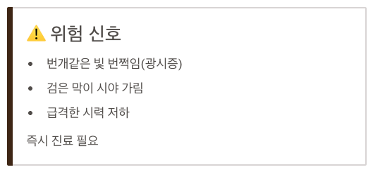 이러한 증상은 망막박리, 유리체 출혈 등 응급질환의 징후일 수 있습니다.
