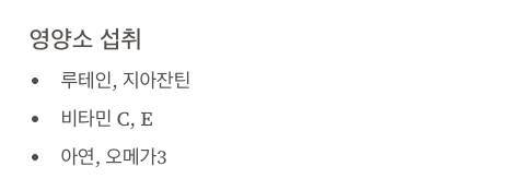 - 루테인, 지아잔틴: 황반과 유리체 건강에 도움