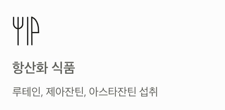 - 항산화 식품 섭취 – 루테인, 제아잔틴, 아스타잔틴 포함 식품