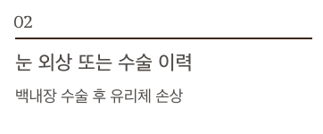 눈에 강한 충격을 받았거나, 백내장 수술 등으로 인해 유리체 구조가 손상될 수 있습니다. 이런 경우 유리체가 조기에 변화하여 비문증이 유발되며, 노화보다 갑작스럽게 증상이 나타나는 경향이 있습니다.