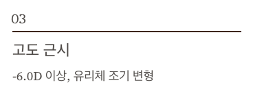 근시 특히 고도근시(–6.0D 이상) 환자는 유리체가 일반인보다 더 빨리 변형됩니다. 안구 길이가 길어 유리체가 쉽게 늘어나고 당겨지며, 비문증 발생률이 높고 빠릅니다.