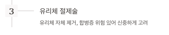 - 유리체 절제술(Vitrectomy): 유리체 자체 제거