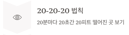 • 20-20-20 법칙: 20분마다 20초간 20피트 떨어진 곳 보기
