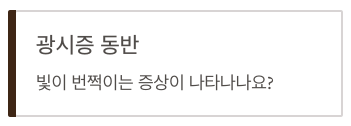• 빛이 번쩍이는 증상(광시증)이 동반되는가?