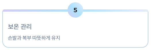 - 복부와 발바닥 중심으로 따뜻하게 유지
