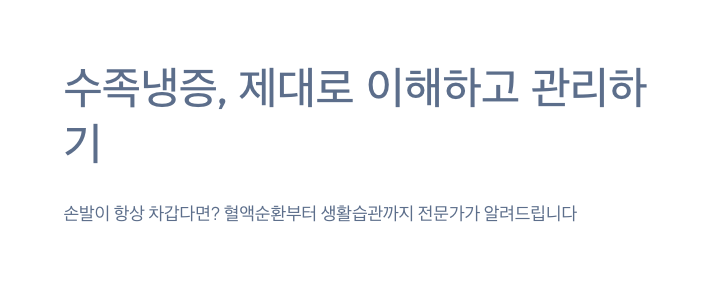 수족냉증은 손발이 비정상적으로 차가워지는 증상으로 혈액순환 장애, 스트레스 등이 원인이 될 수 있습니다. 정확한 원인과 치료법, 생활관리 팁까지 상세히 알려드립니다.