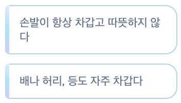 - 손발이 항상 차갑고 따뜻하지 않다