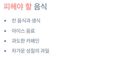 - 찬 음식, 아이스 음료는 피하기