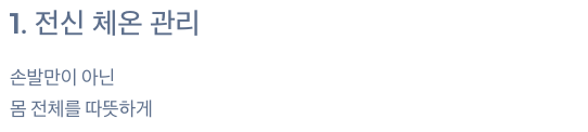 - 손목·발목을 따뜻하게 유지하면 전신 체온 유지에 효과적