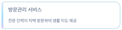 • 방문관리 서비스: 필요시 전문 인력이 자택 방문해 생활 지도