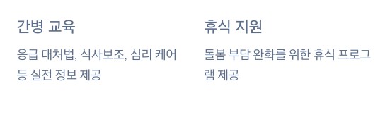 • 휴식 지원: 가족 돌봄 부담 완화 프로그램 제공