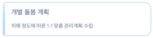 • 개별 돌봄 계획 수립: 치매 정도에 따른 1:1 관리계획 제공
