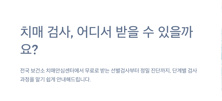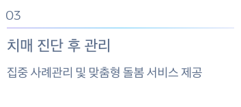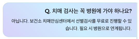 - 협약 병원: 치매안심센터와 협력하여 진단검사 및 감별검사 진행