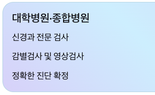 - 대학병원 및 종합병원 신경과에서 전문적 검사 가능