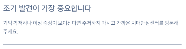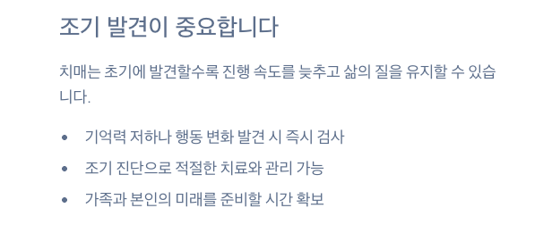 치매는 조기 발견과 관리가 매우 중요한 질환입니다.