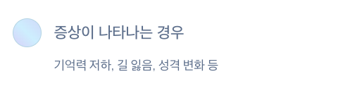 - 기억력 저하, 길 잃음, 성격 변화 등의 증상이 나타나는 경우