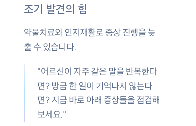 조기 발견은 약물치료 및 인지재활로 증상의 진행을 늦추는 가장 효과적인 방법입니다.