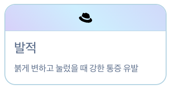 통증이 있는 부위는 다음과 같은 염증 반응을 보입니다: